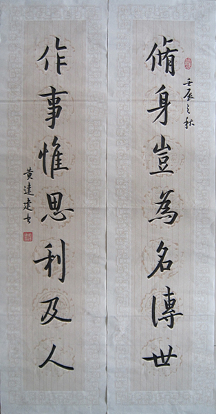 黄达建,祖籍温州,现居北京,建德轩主人,江夏紫云派始祖黄守恭之后,与元代著名画家黄公望同宗,书法师法汉代草圣崔子玉。现为国家一级美术师,文化部中国乡土艺术协会理事,全球艺术奥运主席团主席。
